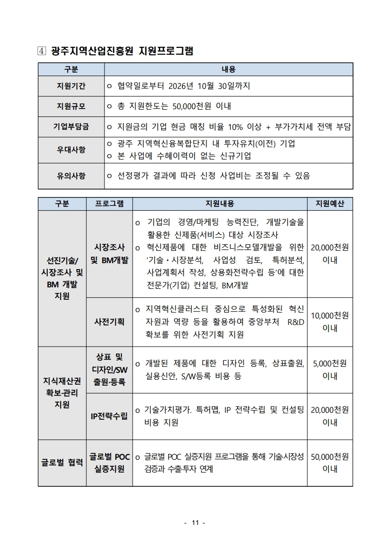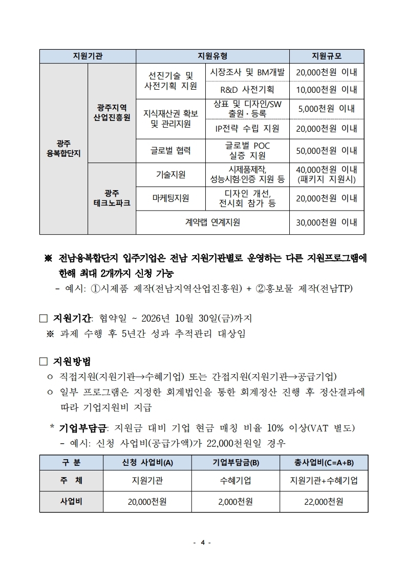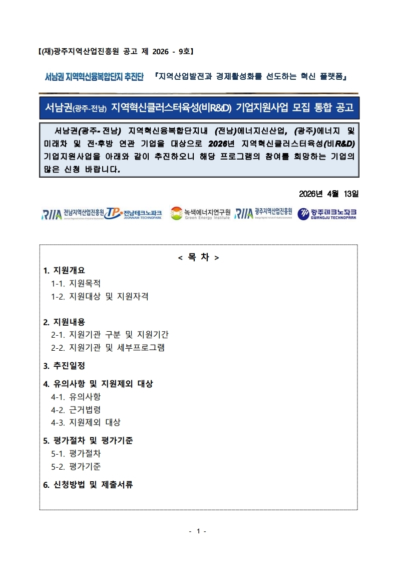 2026년 서남권 지역혁신클러스터육성(비R&D) 기업지원사업 모집 통합 공고_광주진흥원_공고용.hwp